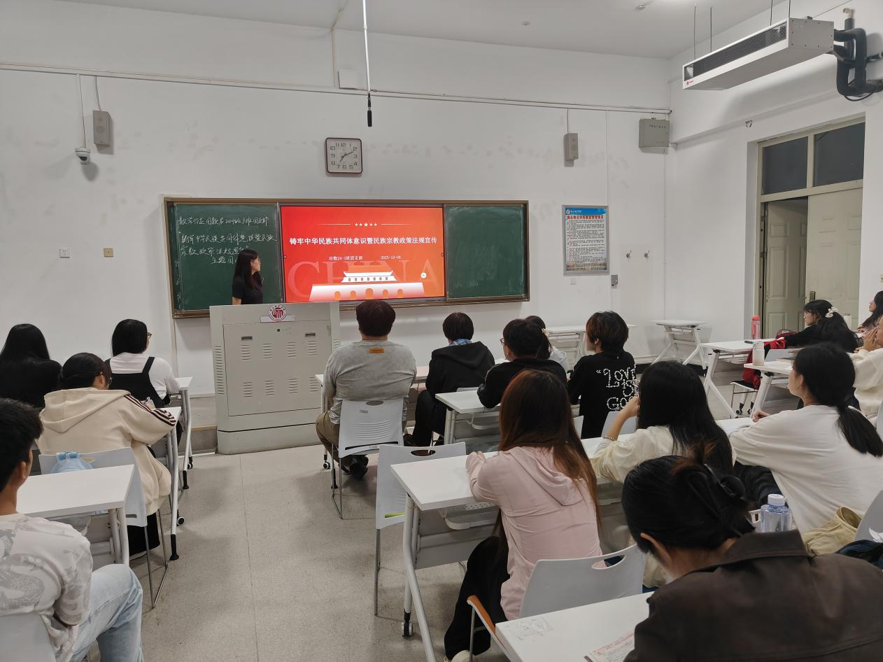 为深入贯彻落实中央、省委民族工作会议精神,引导广大青年学生牢固树立中华民族共同体理念,beat365英国官网网站于10月8日下午在梁园校区行方楼开展了“铸牢中华民族共同体意识暨民族宗教政策法规宣传”主题团日活动。