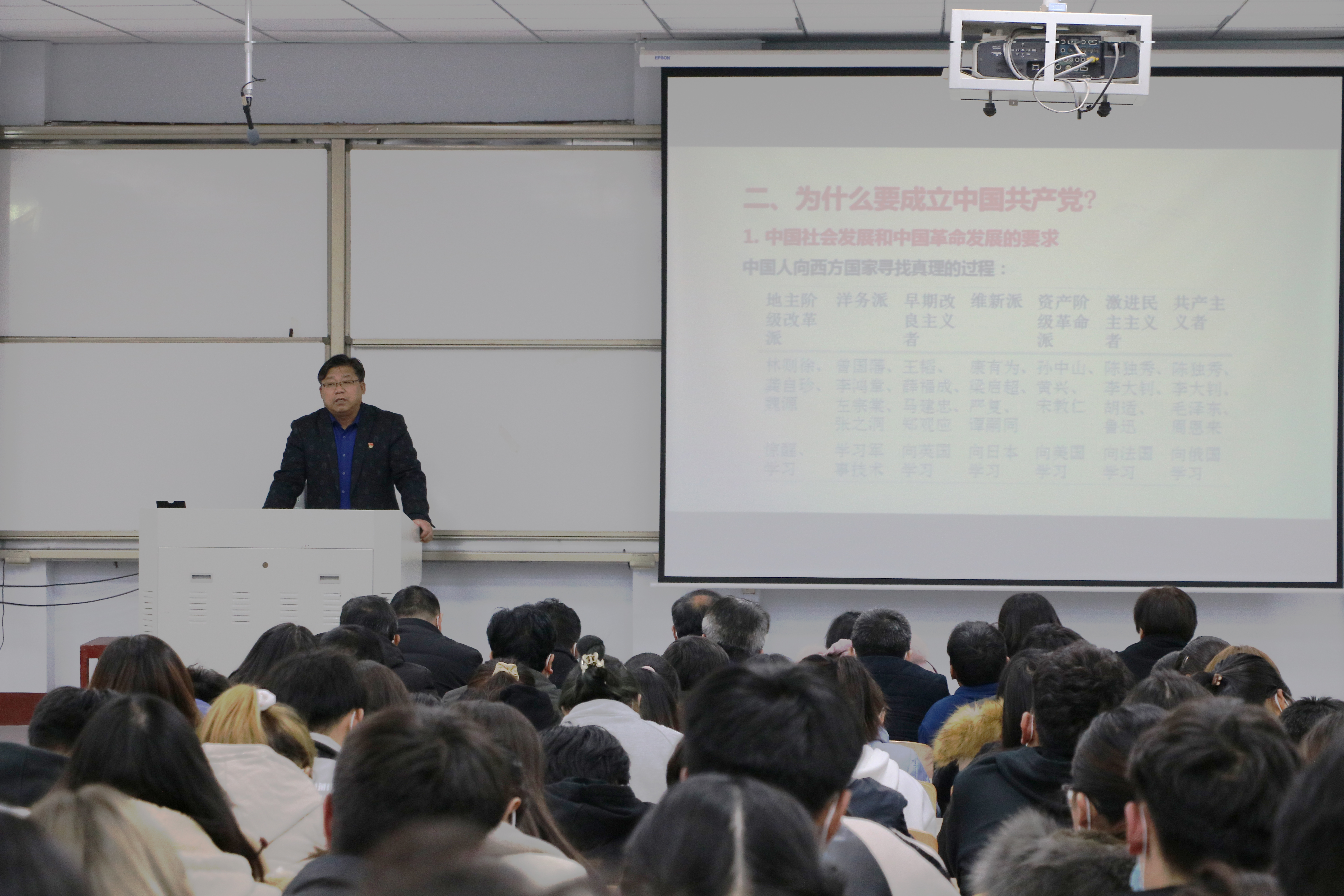 为庆祝建党一百周年,加深beat365英国官网网站全体师生员工对党的认识,增强做好党史学习教育的自觉性。2021年3月8日晚,beat365英国官网网站邀请法学院副院长李东坡教授在1号楼208教室为全体教职工和200余名学生代表做“学党史,跟党走”庆祝建党一百周年党史学习教育专题讲座,讲座由党总支书记陈东主持。