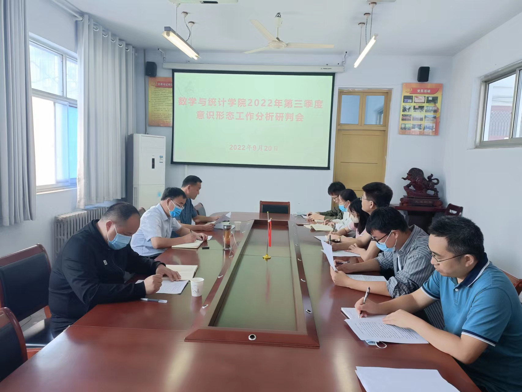 9月20日上午,beat365英国官网网站在数学楼204会议室召开2022年第三季度意识形态工作分析研判会。副校长徐茂田、beat365英国官网网站党委委员、各党支部书记、全体辅导员参加了会议。本次会议由党委书记孟学超主持。