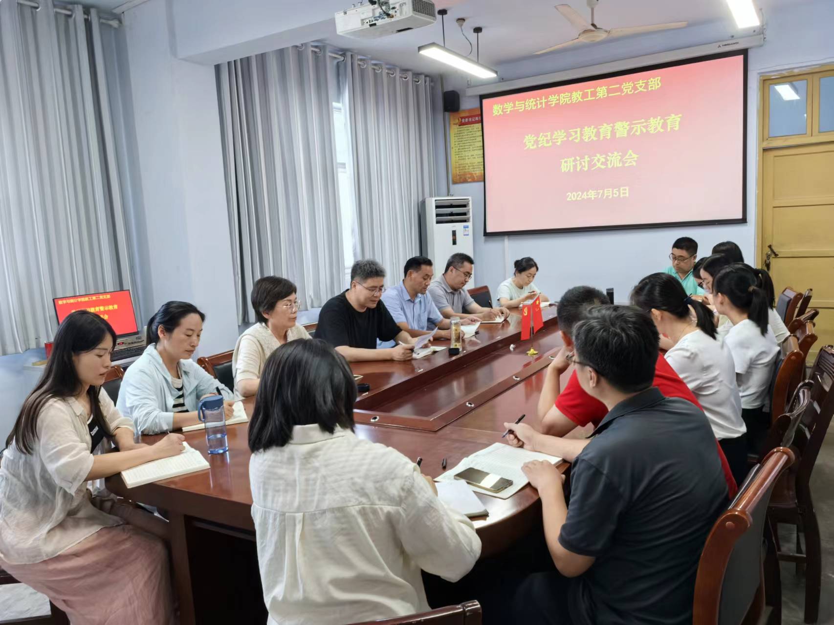 2024年7月5日,beat365英国官网网站在数学楼204党员活动室召开党纪学习教育警示教育研讨交流会,学院领导班子、教职工党支部党员参加了此次会议,会议由教工支部书记主持。