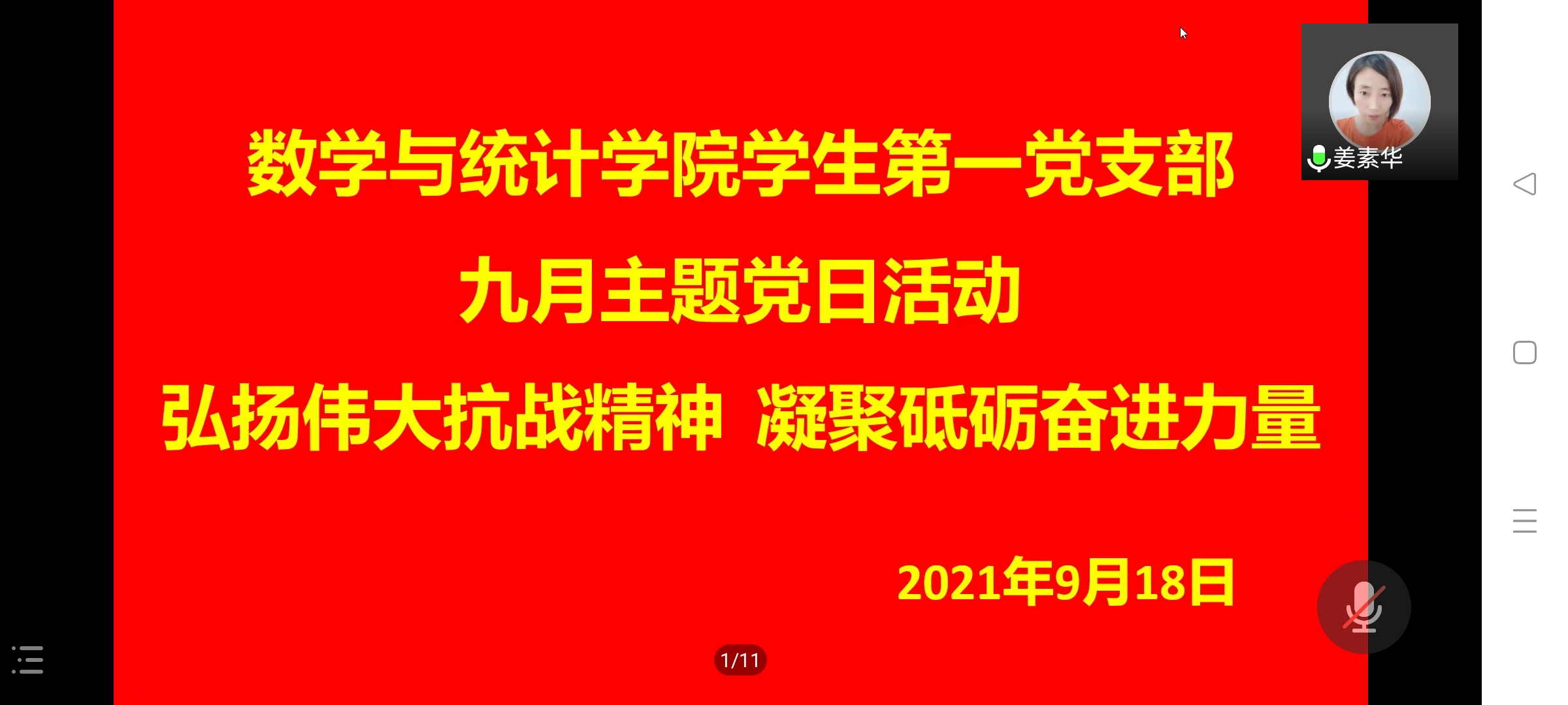 为深入了解中国历史,加强学生思想道德教育,弘扬以爱国主义为核心的伟大民族精神,激励青年不忘国耻,爱我中华,凝聚奋进力量,争做新时代有为青年。9月18日中午,beat365英国官网网站学生第一党支部开展了以“弘扬伟大抗战精神 凝聚砥砺奋进力量 ”为主题的党日活动,第一党支部书记姜素华老师与会发言,第一党支部全体党员参与。