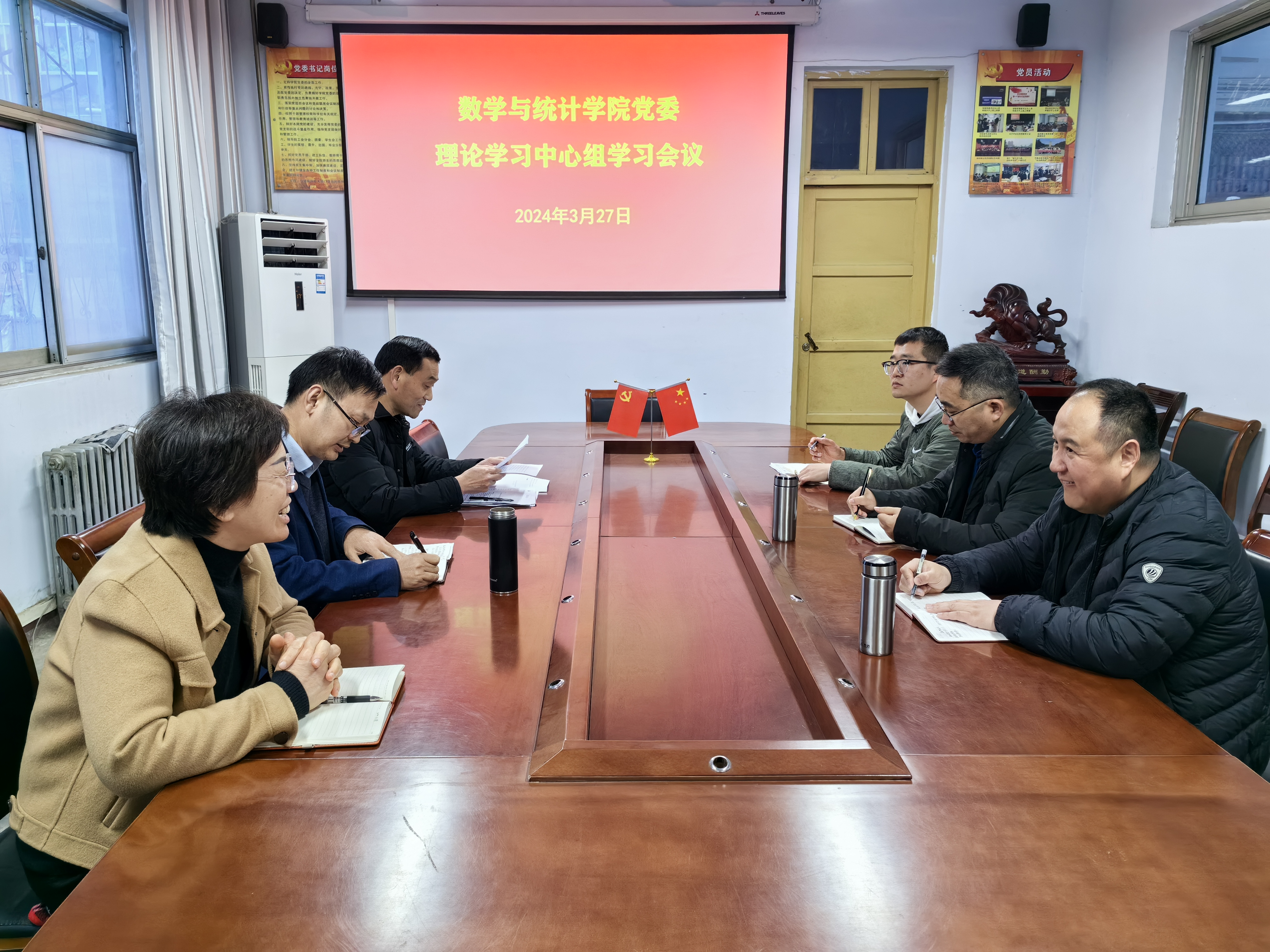 2024年3月27日,beat365英国官网网站在数学楼204党员活动室召开党委理论学习中心组会议,学院党委委员参加了此次会议。会议由学院党委书记孟学超主持。