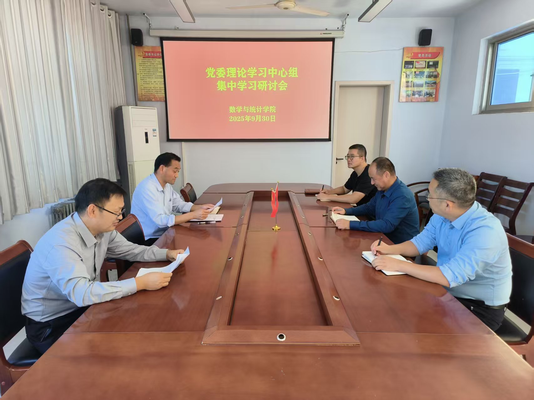 9月30日,学院党委理论学习中心组在数学楼204党建活动室召开党委理论学习中心组会议,学院党委委员参加了此次会议,会议由学院党委书记孟学超主持。