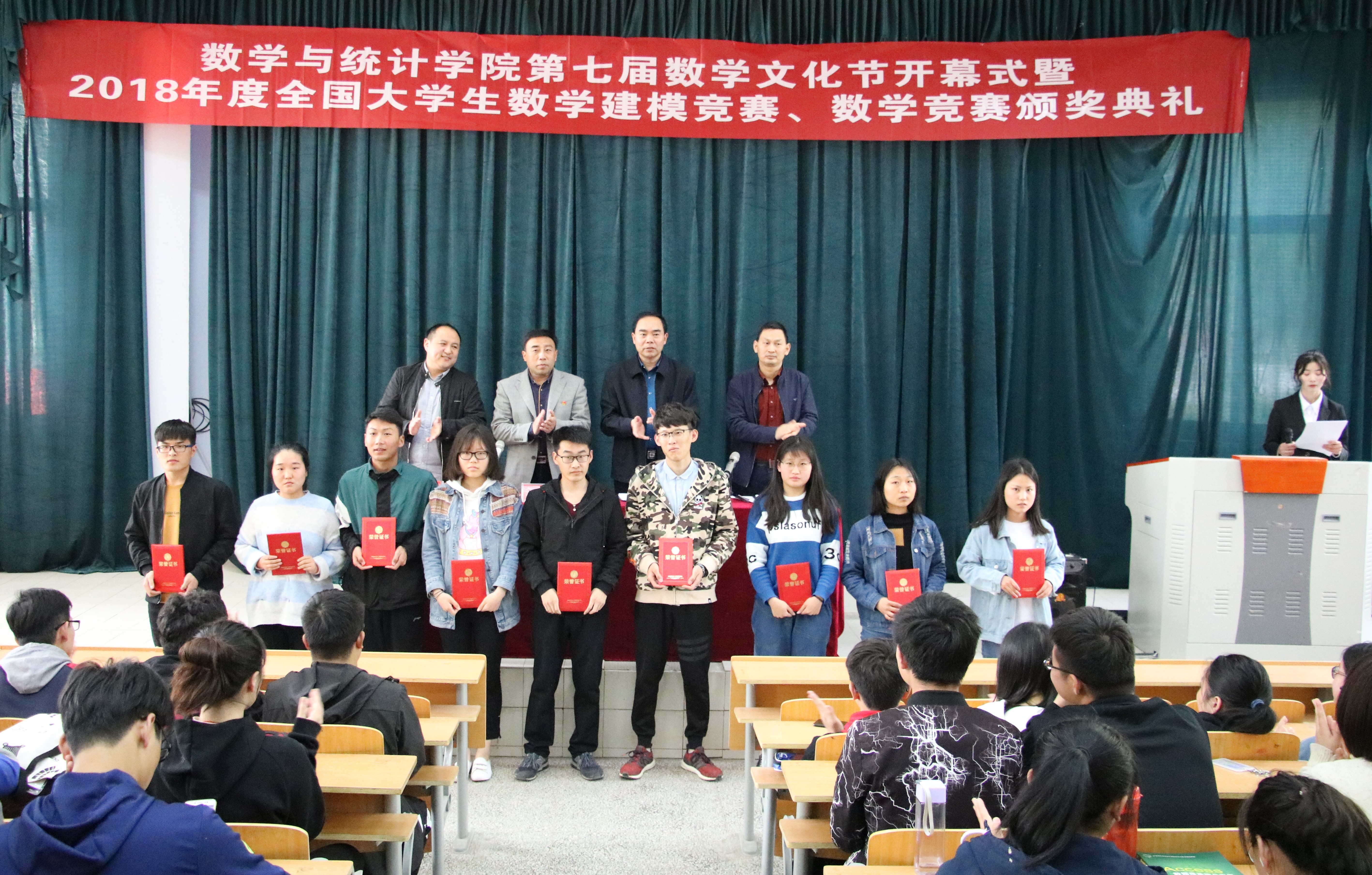 大会进行第二环节,首先由梁洪亮院长对2018年度全国大学生数学建模竞赛、数学竞赛颁奖典礼致辞,并简单介绍了本年度我校参加全国大学生数学建模竞赛、数学竞赛的情况及获奖情况。接着由院领导依次宣读了获奖人员名单并对他们进行了表彰。然后,由数学建模竞赛、数学竞赛获奖代表上台发言并分享了他们的学习经验。最后,大会在领导们与获奖学生们的合影中落下帷幕。