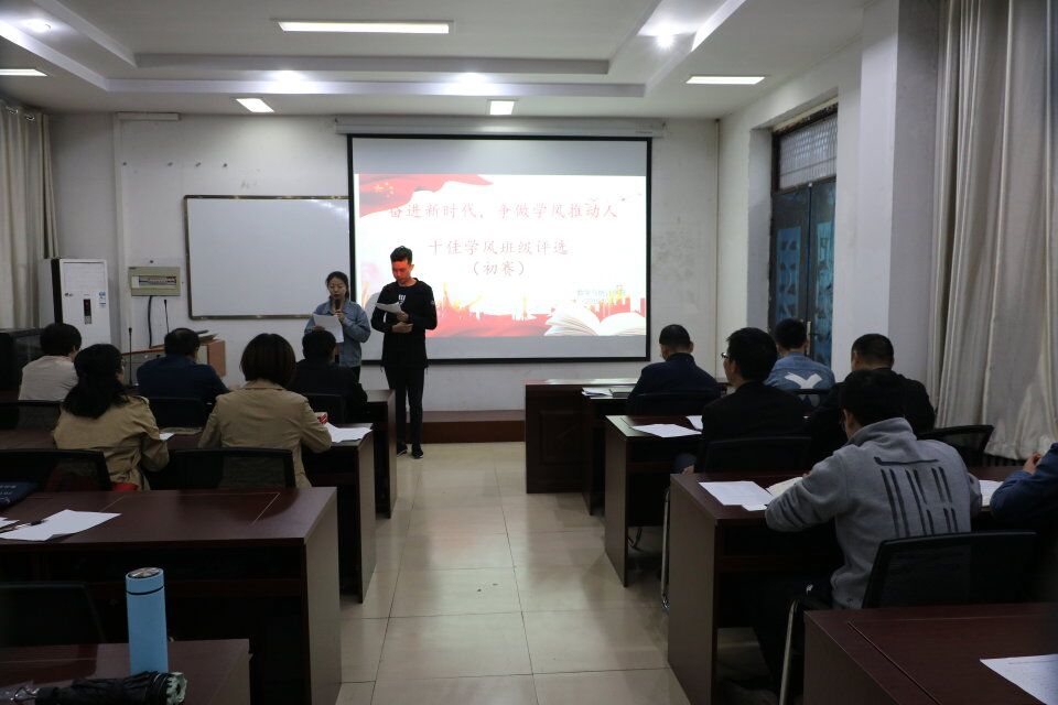 为进一步加强优良学风班级的创建工作,激励在过去一学年中取得良好成绩的班级。beat365英国官网网站于10月11日在办公楼208教室举行了“奋进新时代,争做学风推动人”十佳学风班级评选初赛。本次评选初赛由beat365英国官网网站党总支书记陈东,院长梁洪亮,党总支副书记陈树艳,副院长刘磊、张斐然及各年级辅导员和班主任担任评委。