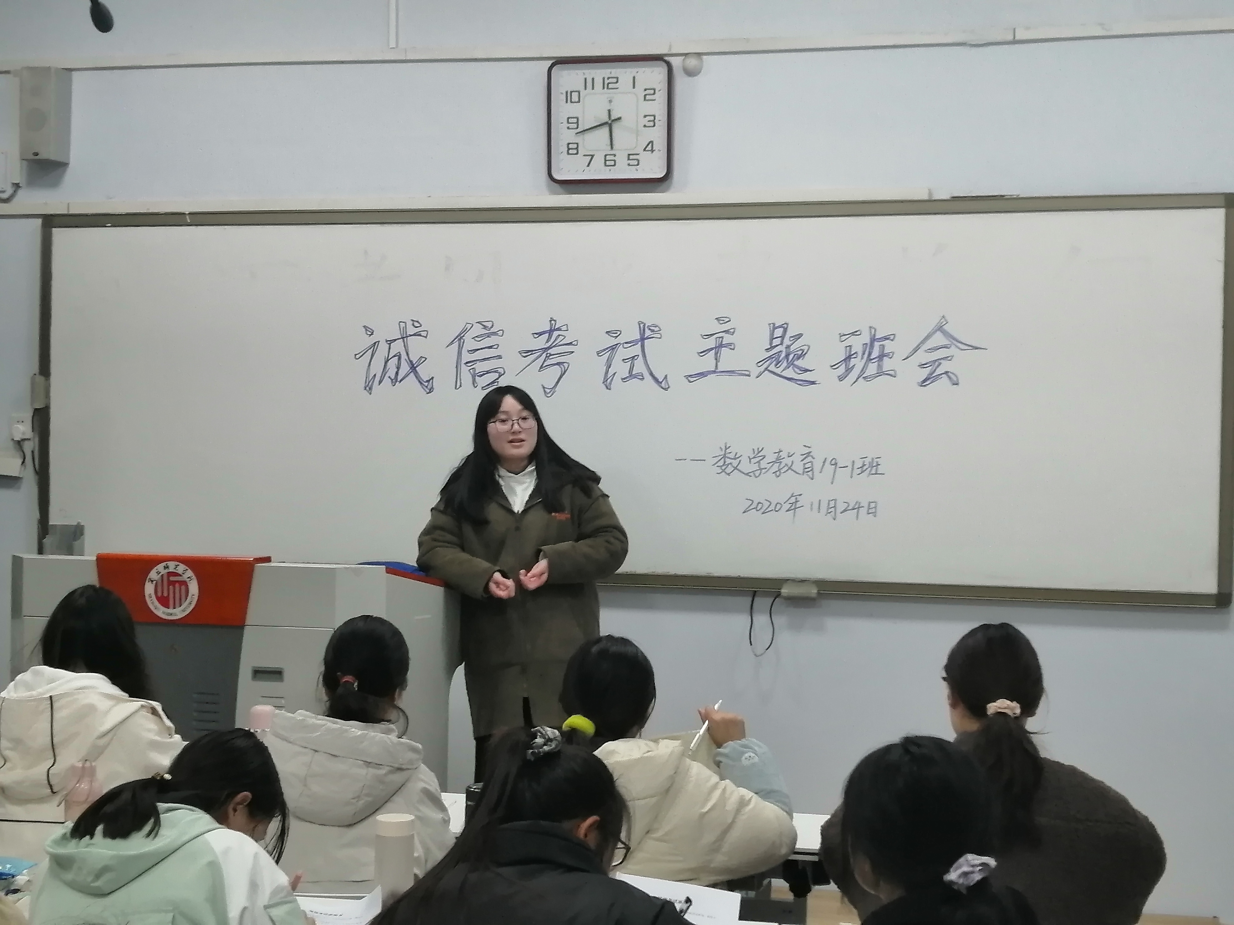 通过开展本次“诚信考试”和“专业课复习”主题班会,对学生数学专业课知识的学习进行了有针对性的指导,帮助学生树立了诚信为荣作弊可耻的道德观念,对加强学院班级学风建设营造积极向上的学风有重要意义。