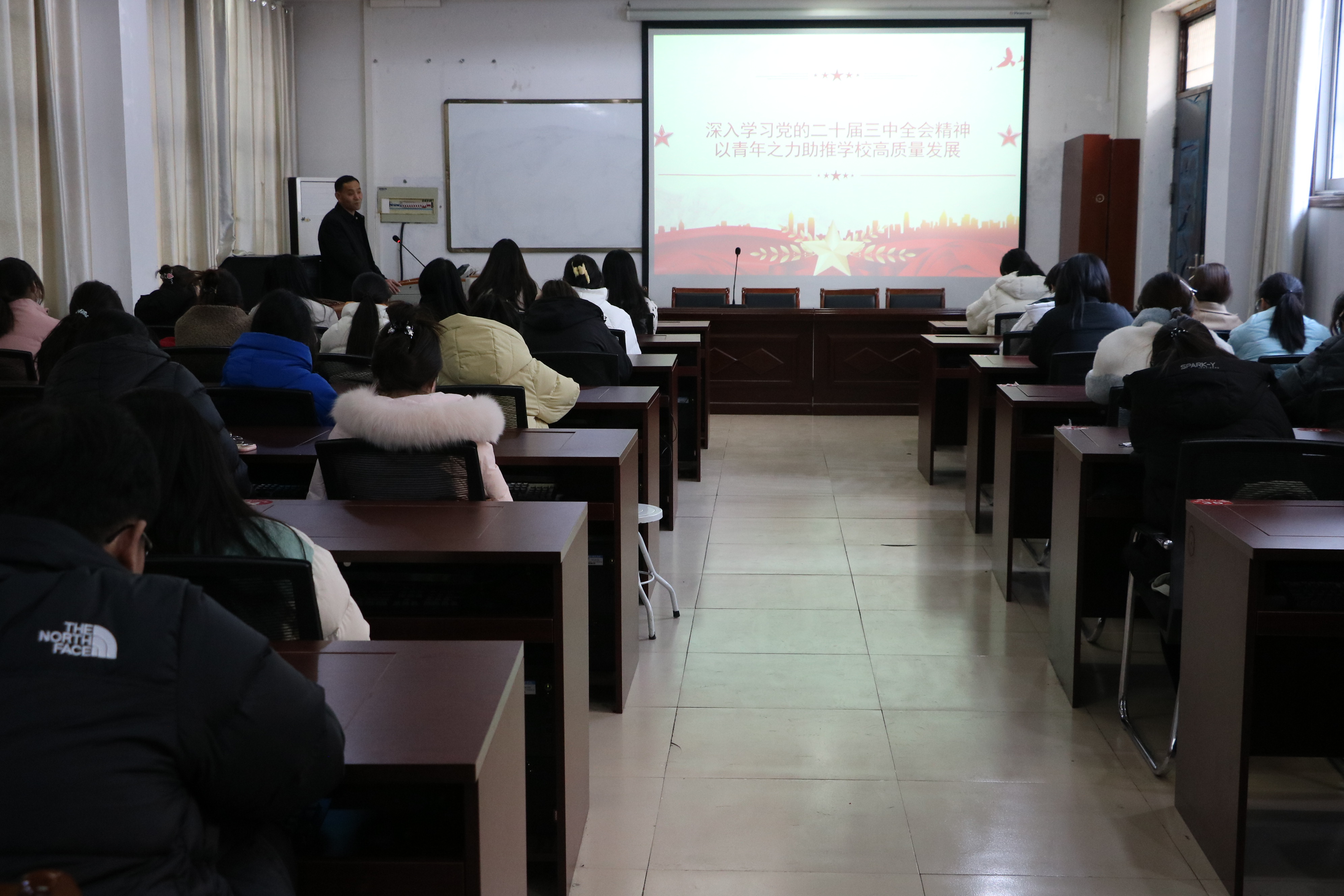 本次培训主题为“深入学习党的二十届三中全会精神,以青年之力助推学校高质量发展”。孟学超书记首先对青年马克思主义工程进行了阐述,并指出了该工程的目的是为党培养骨干力量。本次培训会解读了学校高质量发展关键任务,强调了深化改革重要性,孟学超书记指出了高质量发展是建设强国与学校的核心目标,并详述了深化改革总目标、六个原则及十四个方面部署,涉及多领域,为学生干部明确学校发展方向和重点。接着,孟学超书记提出要更好地平衡学工关系,从而以更饱满的精神状态促进学校发展。最后,为了更好地开展学习与工作,孟学超书记强调了年底校园安全事宜,并指出学生需保障生活与身体状态,平衡好学习与日常生活。