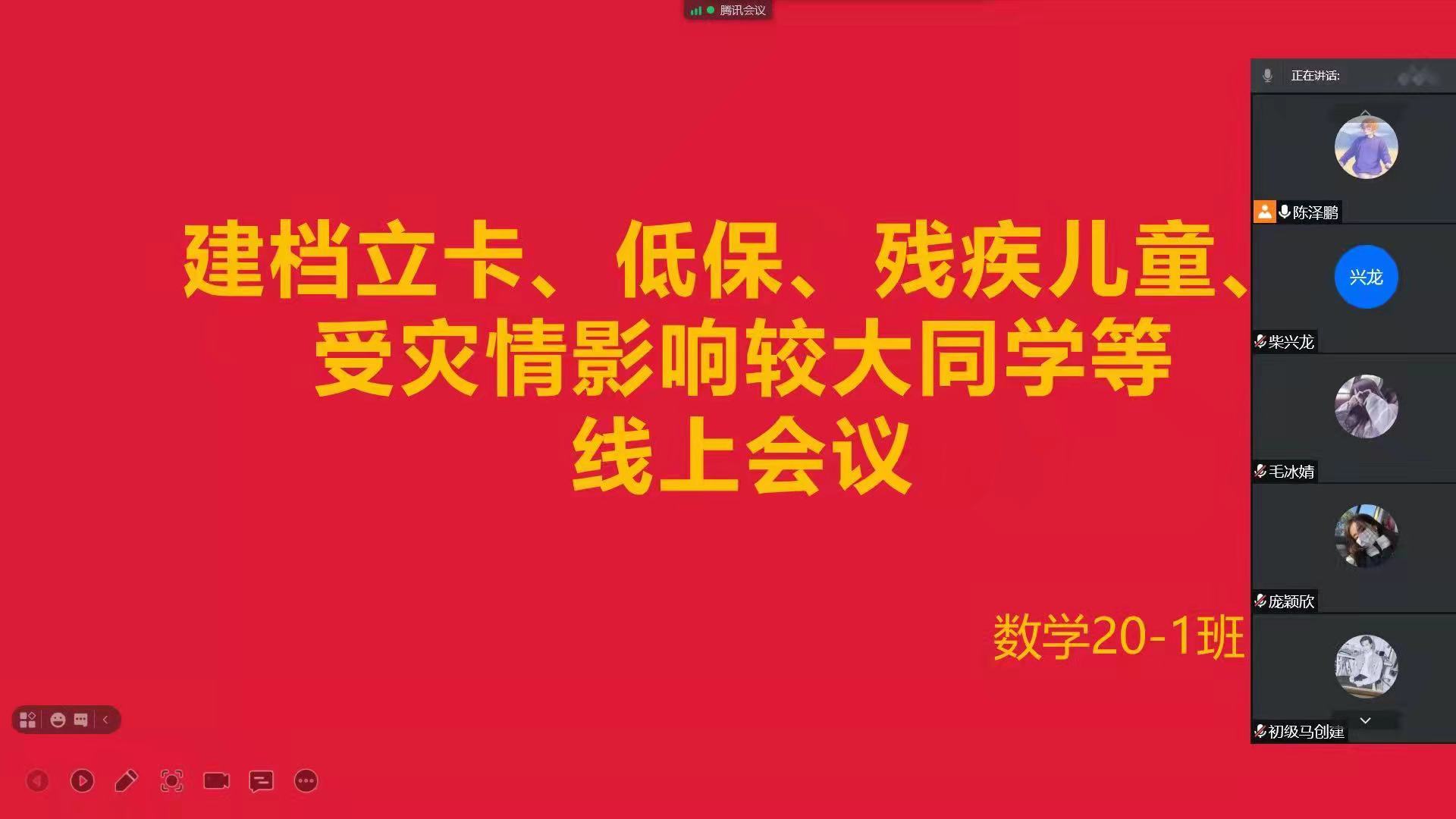 因疫情原因学生暂时未返校,beat365官网辅导员采取线上主题班会宣讲和重点人沟通的方式对学院困难学生进行了摸底排查,向学生宣传资助政策、鼓励家庭经济困难学生认真学习。特别是对“原建档立卡学生、低保、城市困难职工家庭的子女和特困人员、残疾人子女、孤儿、残疾儿童以及受本次疫情及河南汛灾影响较大学生等特殊人群进行了深入的了解和谈话沟通,确保学院能够准确的掌握学生的真实状况。