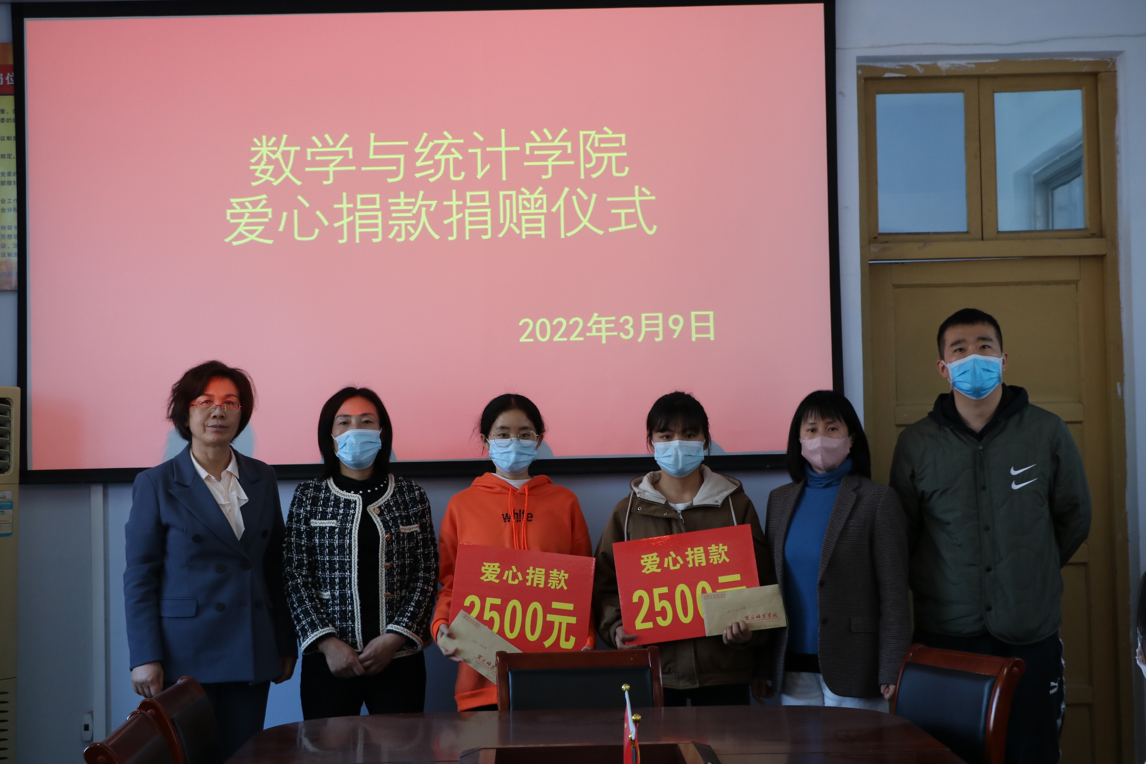 beat365英国官网网站于3月9日在204会议室举办“爱心捐赠”仪式,党委副书记陈树艳、学工办主任李昊阳、各年级辅导员以及两位受赠同学参加。