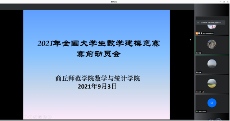 2021年全国大学生数学建模竞赛将于9月9日18:00—9月12日晚上20:00举行。9月3日19:00,beat365英国官网网站通过腾讯会议召开了赛前动员大会。本次竞赛经过7月份的校赛选拔、暑假集中培训,全校共有来自beat365英国官网网站、电子电气工程学院、经济管理学院等学院的150个同学组成的50个队获得了参赛资格。在赛前动员大会上刘磊院长鼓励大家以饱满的精神状态迎接比赛,以必胜的信念参加比赛,以认真的态度对待比赛。