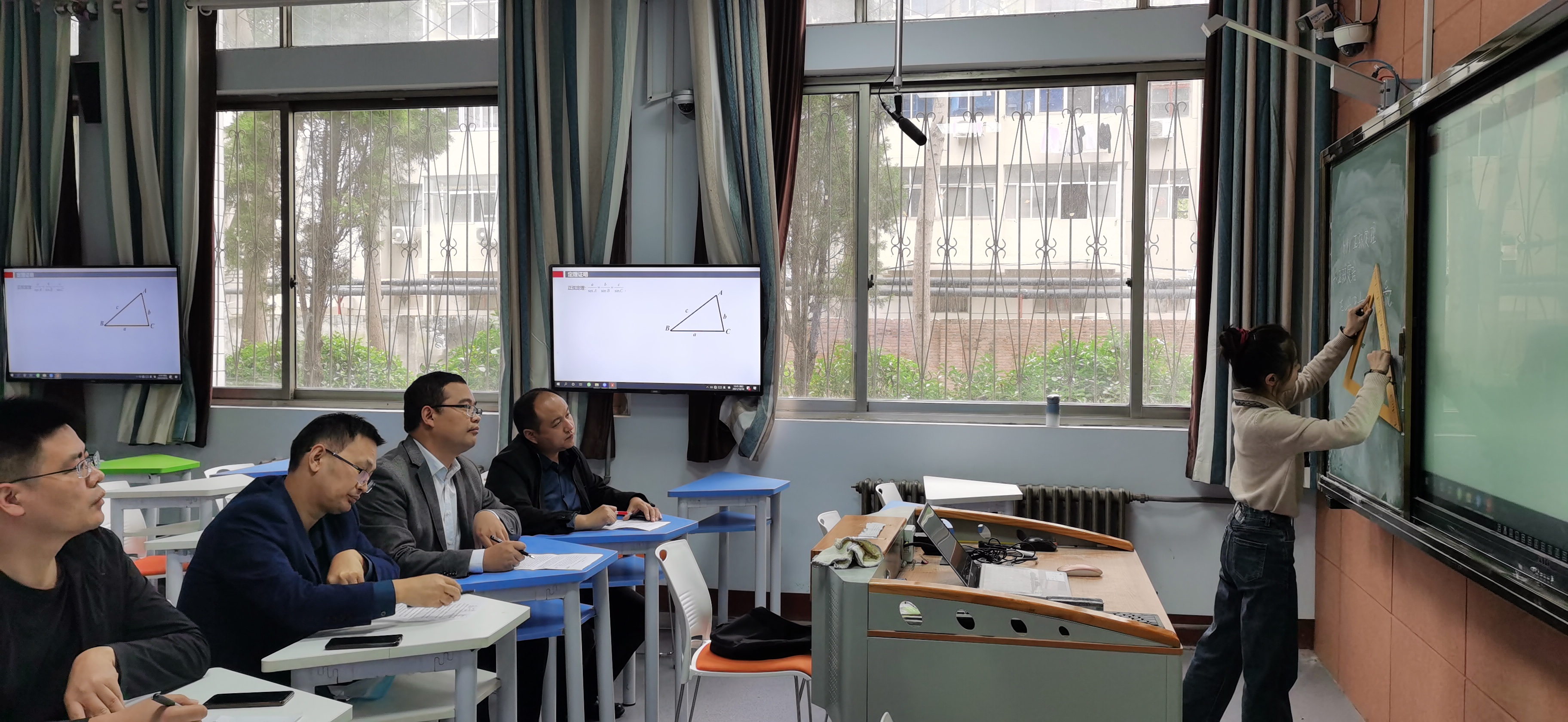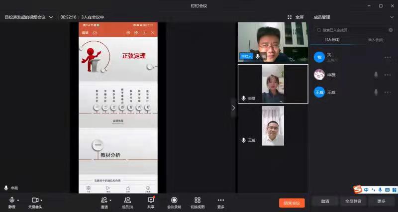 受疫情影响,为做好本次竞赛的准备工作,学院首先通过线上组织学生开展了参赛选拔工作,通过层层选拔,最终确定参赛选手为应数18-2班申薇同学。为了提升参赛选手的中学数学课堂教学实操能力,学院特邀商丘第一高级中学一线教学名师王威老师,协同beat365官网吕松涛老师对申薇同学进行联合培养。由于疫情期间学生不能返校,指导教师克服困难,采取腾讯会议的形式,多次线上对申薇同学进行教学指导。学生返校后,10月10日吕松涛老师和王威老师在睢阳校区1号教学楼110教室对参赛选手申薇进行了专项培训,从教学设计、课件制作、教学方法等方面对申薇所讲授的《正弦定理》进行指导并提出改进建议,帮助学生优化了讲课和说课内容。