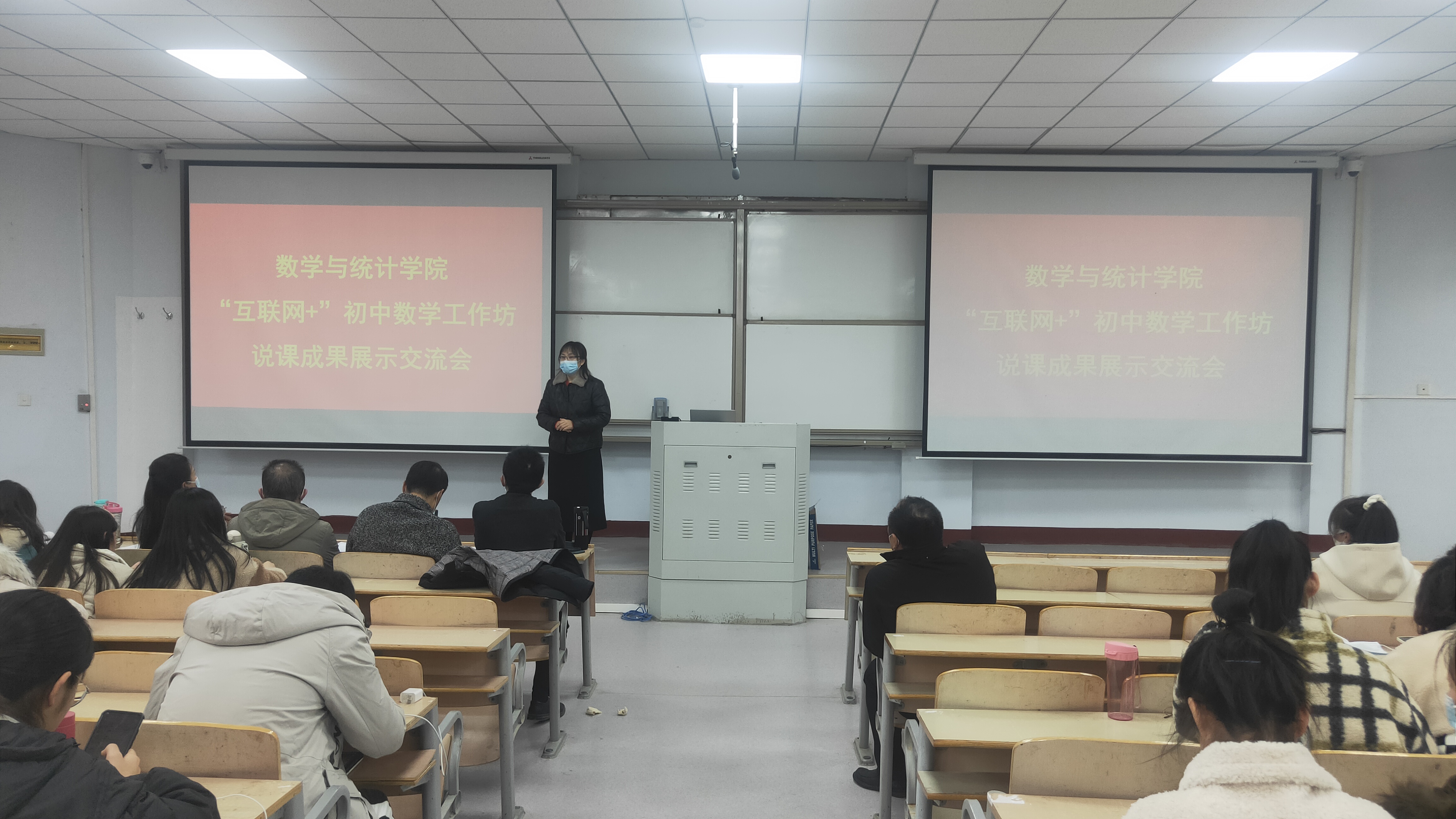 为进一步检验beat365英国官网网站师范生的教学技能及素养,beat365英国官网网站于12月19日下午在1号楼106多媒体教室举行了“互联网+”初中数学工作坊说课成果展示交流会,beat365英国官网网站副院长刘磊、校外优秀指导教师刘菲等10位老师担任本次活动的评委,全体工作坊坊员参加。