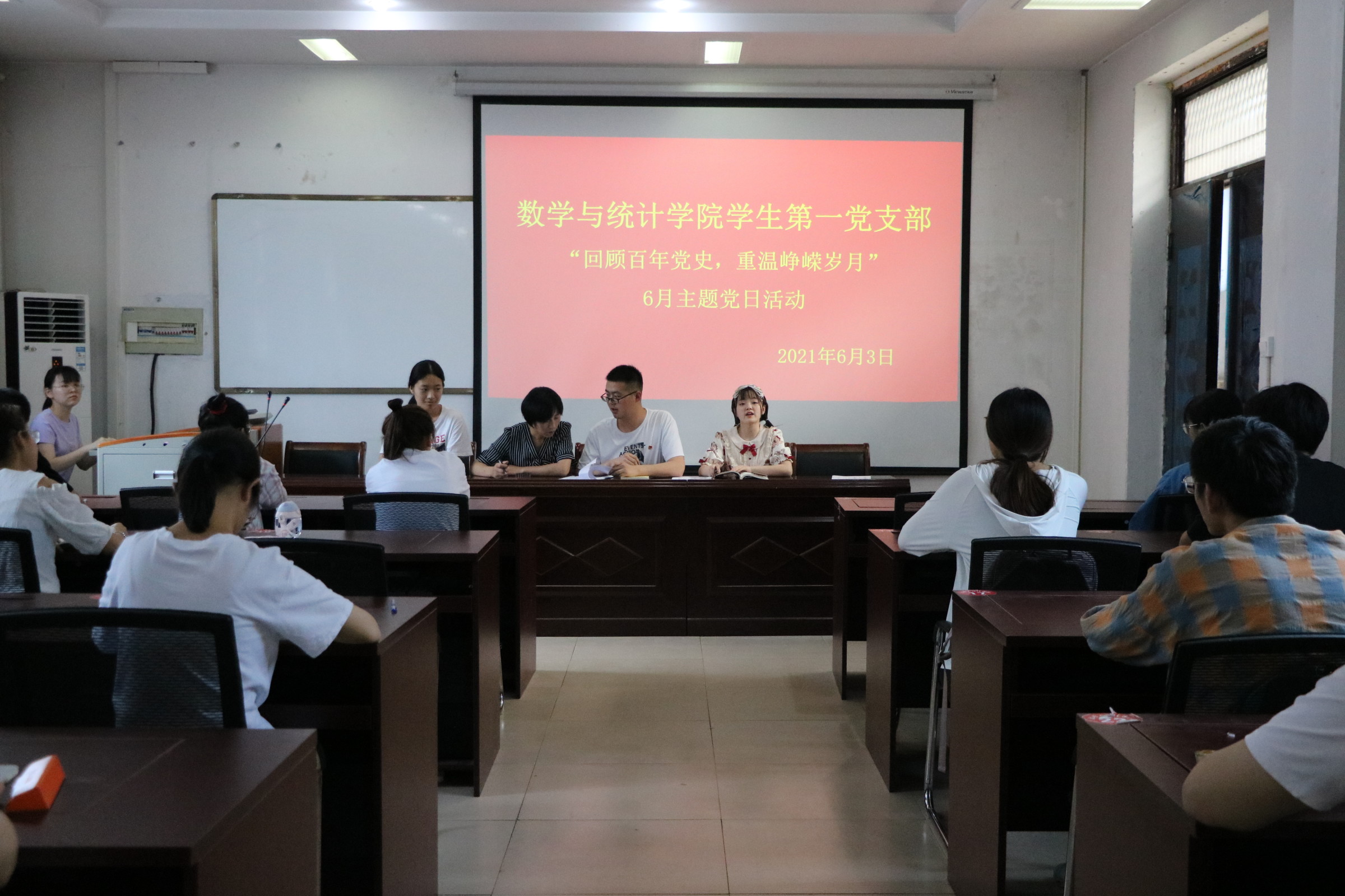 为了推进党史教育,弘扬红色革命精神,商丘师范学院beat365英国官网网站于2021年6月3日在数学办公楼208开展以“回顾百年党史,重温峥嵘岁月”为主题的党日活动。此次党日活动由第一党支部书记姜素华主持,beat365英国官网网站第一党支部全体党员参加。